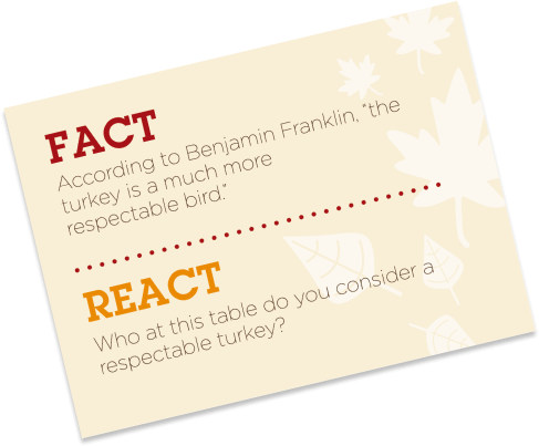 Learn facts about Thanksgiving and your guests with Unstable Topics: Thanks(mis)givings Conversation Cards!